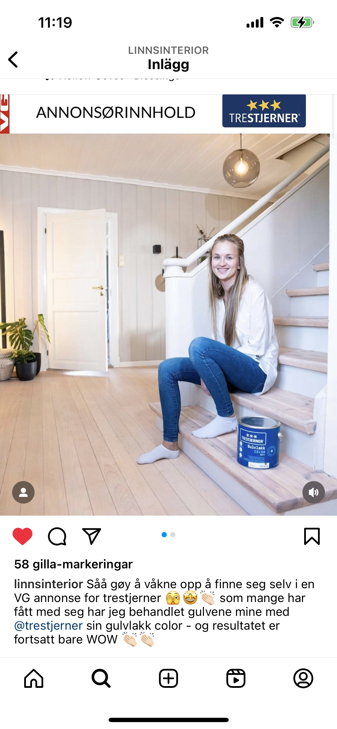 Linn, som lakker om gulvet sitt i saken, er interiør-influenser. En troverdig case som elsker å pusse opp og gjøre det selv.